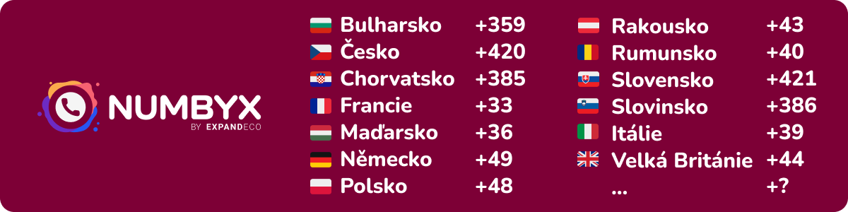 Lokální telefonní čísla zemí západní Evropy (rakouská, německá, francouzská, italská či britská) máte dostupná během jednoho dne. Numbyx pokrývá i lokální čísla z regionu severního balkánu a zemí střední a východní Evropy (chorvatská, slovinská, rumunská, česká, slovenská či polská). Numbyx neustále rozšiřuje nabídku lokálních telefonních čísel a postupně přidává do nabídky další evropské země. V případě zájmu o konkrétní předvolbu můžete napsat přímo na sales@numbyx.com.