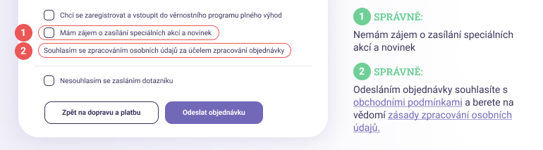 TIP: Pozor si dejte na „hru se slovíčky“ a nesprávně definované souhlasy/nesouhlasy, které jsou právně napadnutelné. Definice musí být jasné a nesmějí spotřebitele zavádět.