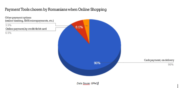 Szlovákia és Csehország jópár lépéssel Románia előtt jár, ami az utalásos fizetéseket illeti. Azon tény ellenére is, hogy nálunk még szintén az utánvétes fizetési mód uralkodik, az NMS Market Search ügynökség illetve a Heuréka árösszehasonlító oldal felmérése alapján 58%-ot tesz ki ez a fizetési mód, azonban így is nagy előrelépést tettünk. Második legkedveltebb fizetési mód a banki átutalás, mely 14%-ot tesz ki. 13%-kal büszkélkedhet az online kártyás fizetési mód, melynek aránya minden évben növekszik.