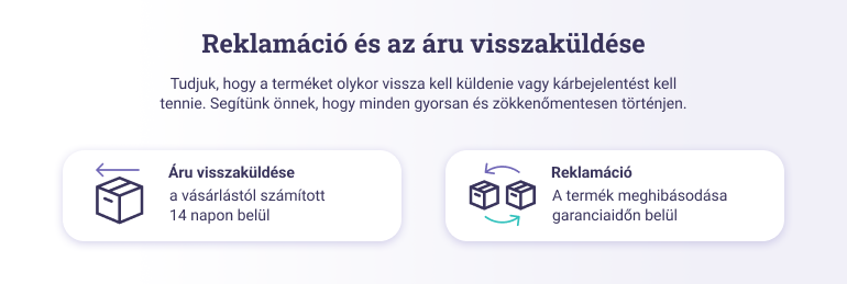 Példa a reklamáció és az áru visszaküldésének helyes feltüntetésére: