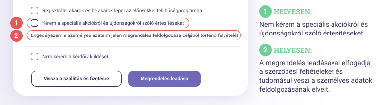 Az angol „General Data Protection Regulation“ kifejezésből keletkezett GDPR egy EU-s rendelet, amely a személyes adatok feldolgozását, védelmét és tárolását tárgyalja. Tudta, hogy az adatvédelem az alapvető emberi jogok közé tartozik? A felhasználót érthetően tájékoztatni kell arról, hogy milyen adatokat vesz fel tőle, milyen céllal, valamint az adatgyűjtést engedélyeznie kell. Erről az e-shopok többsége ún. checkboxok és a feltételek teljes tartalmát megjelenítő linkek segítségével nyilatkozik. Az adatokat biztonságosan és visszakereshetően kell tárolni. Az e-shop üzemeltetőjének további kötelessége a helyes adatok felvétele, amelyek hitelességét ellenőriznie kell, leggyakrabban például az e-mailes személyazonosság-ellenőrzés segítségével.