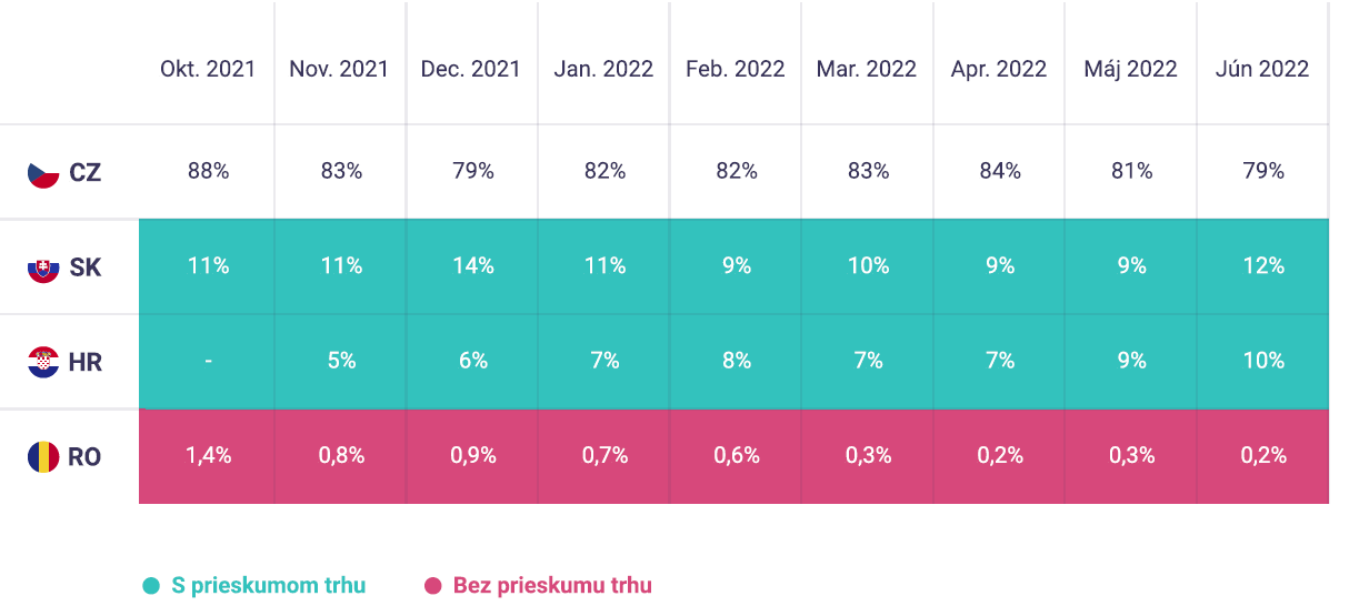 Percentuálne porovnanie obratu v krajinách, v ktorých bola expanzia s/bez prieskumu trhu: