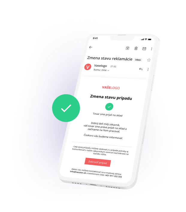 E-shop si v admin prostredí nastaví vybrané notifikácie podľa svojich preferencií. Tie zákazníka v každom kroku informujú o zmene stavu jeho vratky. Vďaka unikátnemu linku môže sledovať jej vybavenie a v prípade potreby priamo komunikovať s podporou.